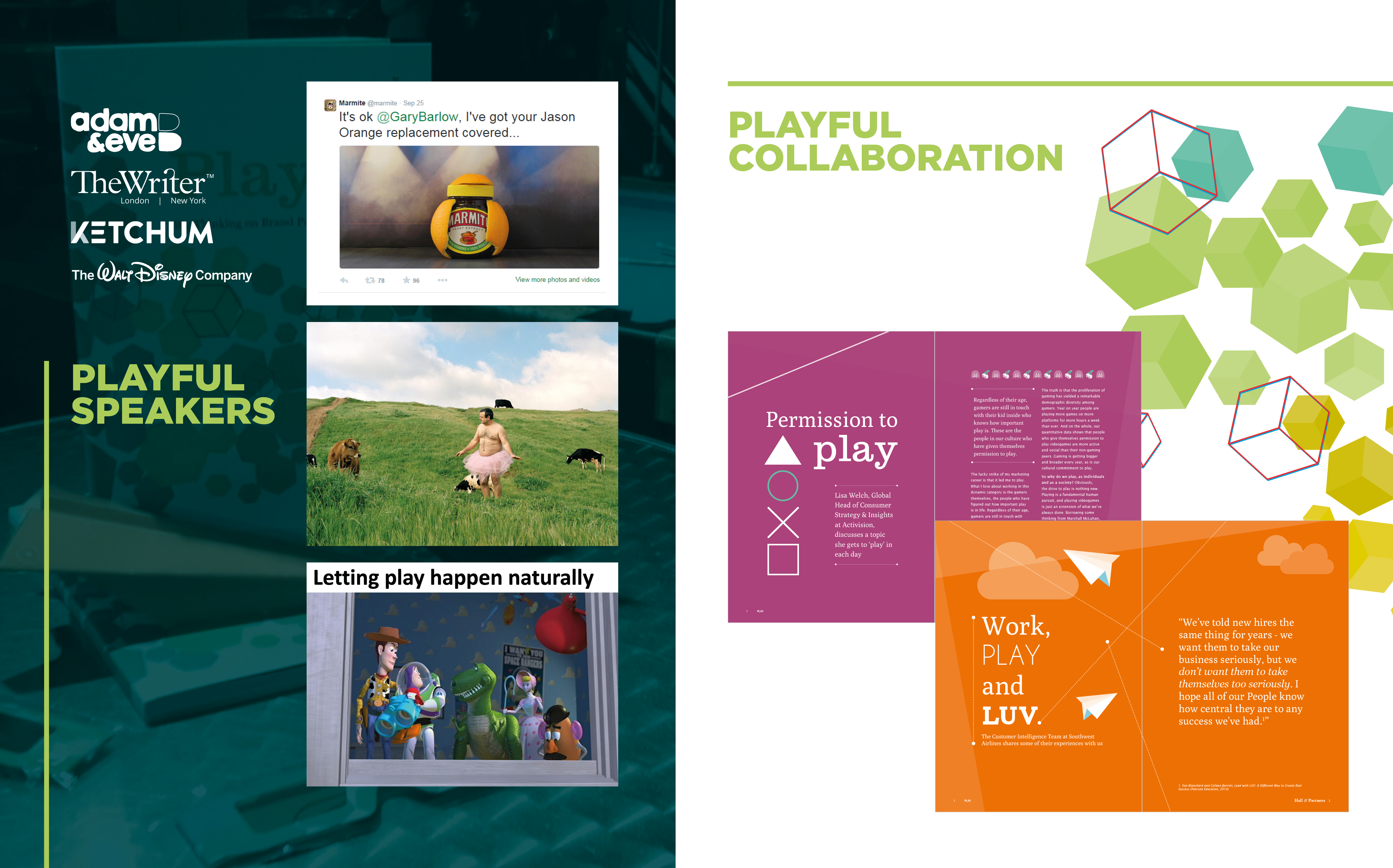 With speakers from a variety of companies –adam&eveDDB, The Writer, Ketchum and The Walt Disney Company – we created an event that reflected our initial goal; to explore the role of ‘Play’ in building stronger relationships between people and brands.